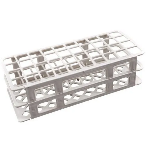 Estante tipo grade fabricada em polipropileno (PP), com capacidade para até 40 tubos de ensaio de aproximadamente 20 mm de diâmetro. Autoclavável e resistente, é indicada para armazenamento, transporte e organização de tubos em diferentes rotinas laboratoriais.