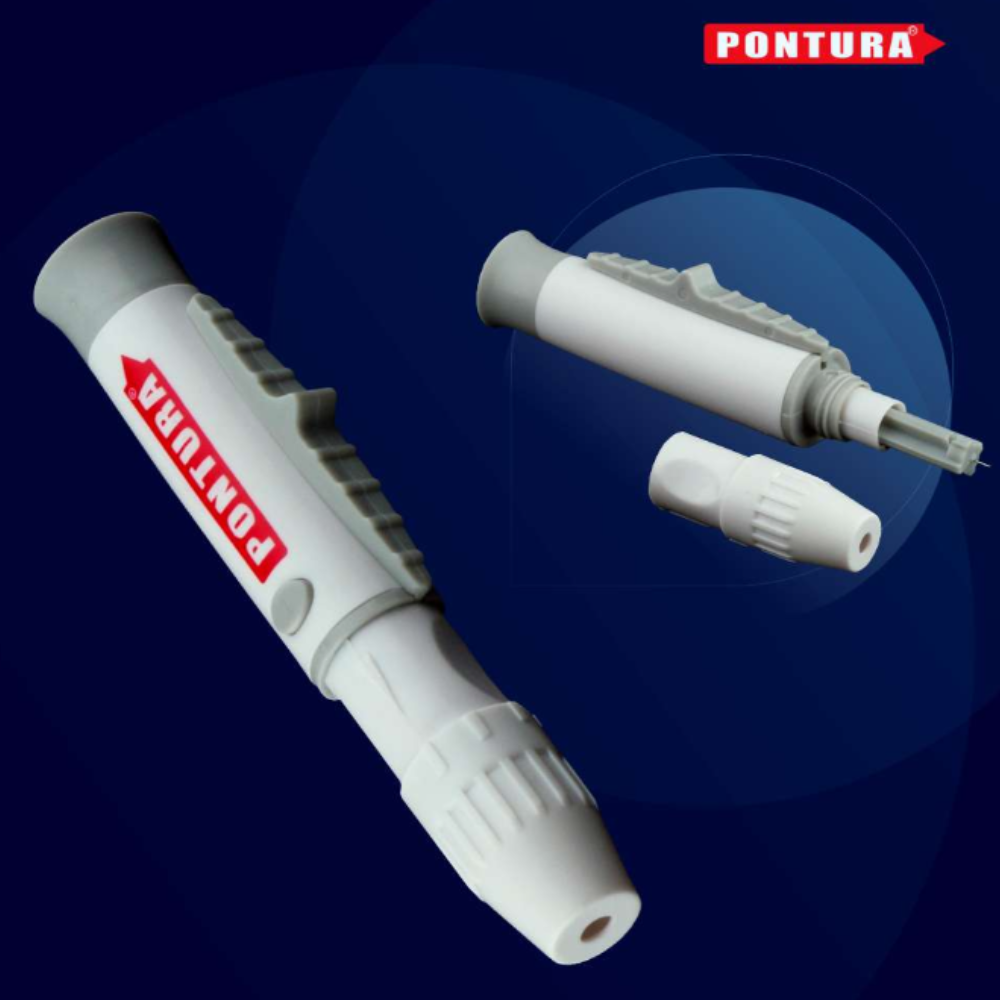 Lancetador portátil para coleta de sangue capilar, ideal para exames que necessitam de gotas de sangue. Permite ajuste do nível de penetração de acordo com o tipo de pele do paciente, garantindo precisão e conforto.