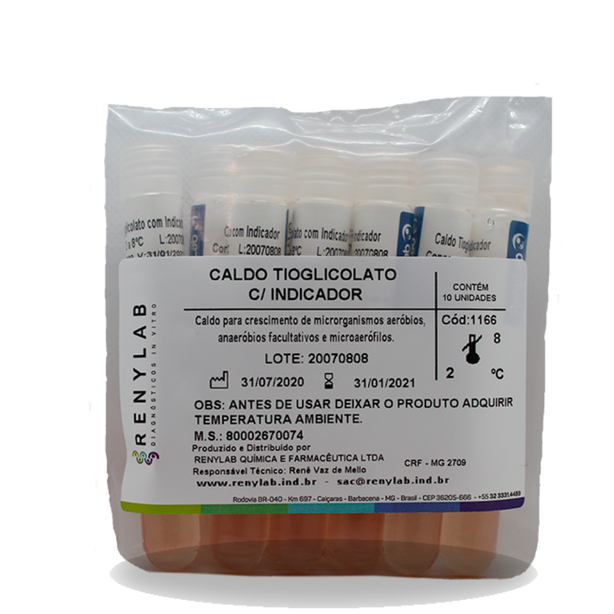 O Caldo Tioglicolato com Indicador é um meio de cultura líquido nutritivo e não seletivo, amplamente utilizado para o crescimento de microrganismos aeróbios, anaeróbios facultativos e microaerófilos.