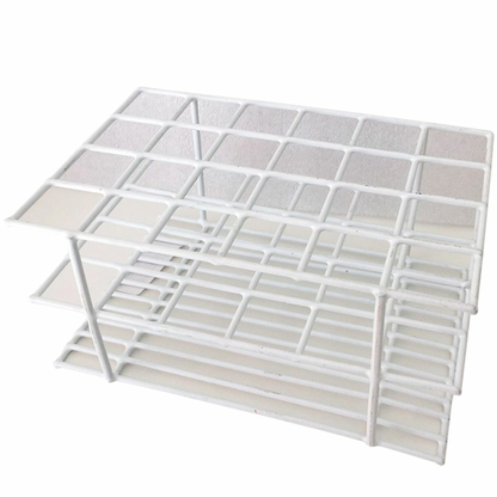 Estante suporte fabricada em arame com revestimento em PVC de alta durabilidade, projetada para armazenar e organizar até 24 tubos de ensaio de 17 mm de diâmetro. Essencial para a rotina laboratorial, garante praticidade e segurança no manuseio de amostras.