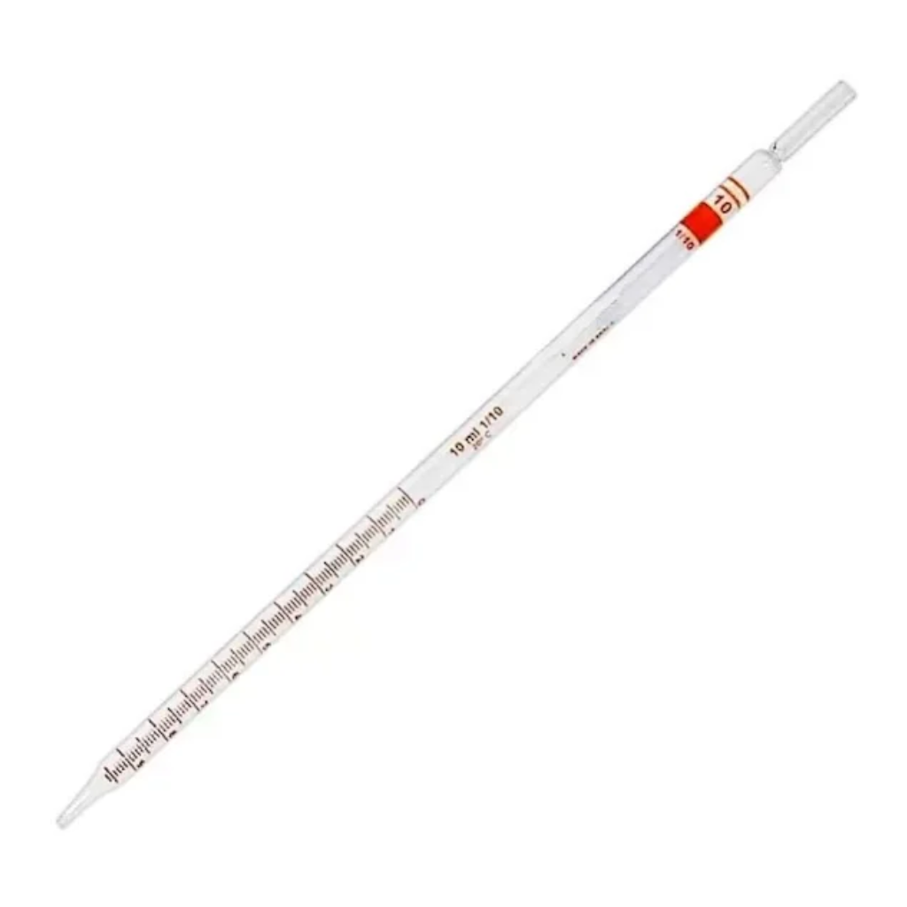 Pipeta sorológica descartável e estéril, com capacidade de 2 mL e graduação 1/100, indicada para medições precisas e transferência de líquidos em análises laboratoriais.