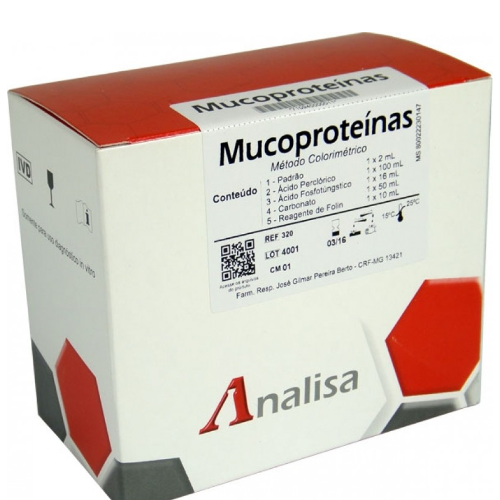 Reagente colorimétrico para determinação de mucoproteínas em soro humano, pelo método de Winzler modificado. Indicado para análises em química clínica, com aplicação em equipamentos semi-automáticos ou em uso manual.