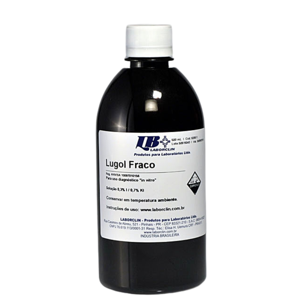 O Lugol Fraco para Gram é um reagente auxiliar utilizado na técnica de coloração de Gram, fundamental para a diferenciação entre bactérias Gram-positivas e Gram-negativas em amostras clínicas e microbiológicas.