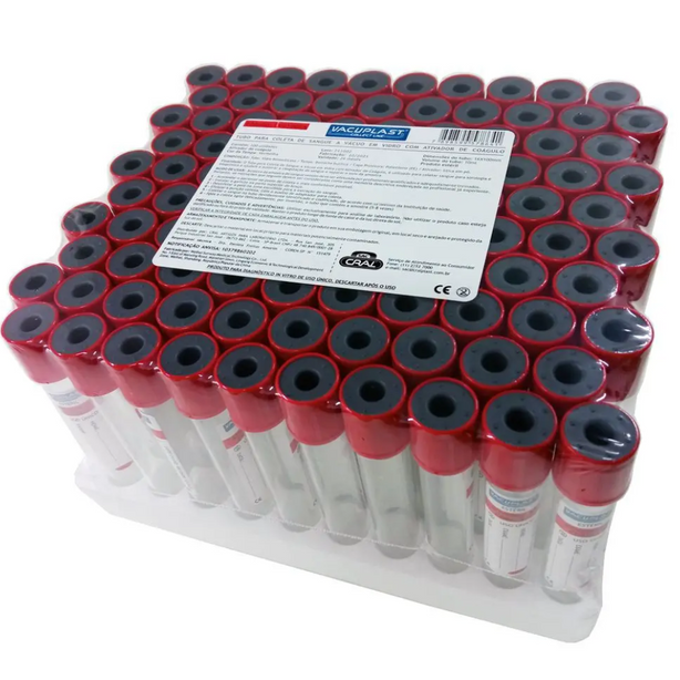 Cor da tampa: vermelha, identificando o ativador de coágulo