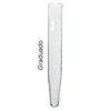 Tubo de centrífuga em vidro borossilicato 3.3, capacidade aproximada de 5 mL, com fundo cônico, borda reforçada e graduação externa.
