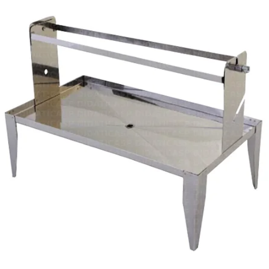 Suporte/bandeja confeccionado em alumínio, desenvolvido para corar até 11 lâminas de microscopia simultaneamente.