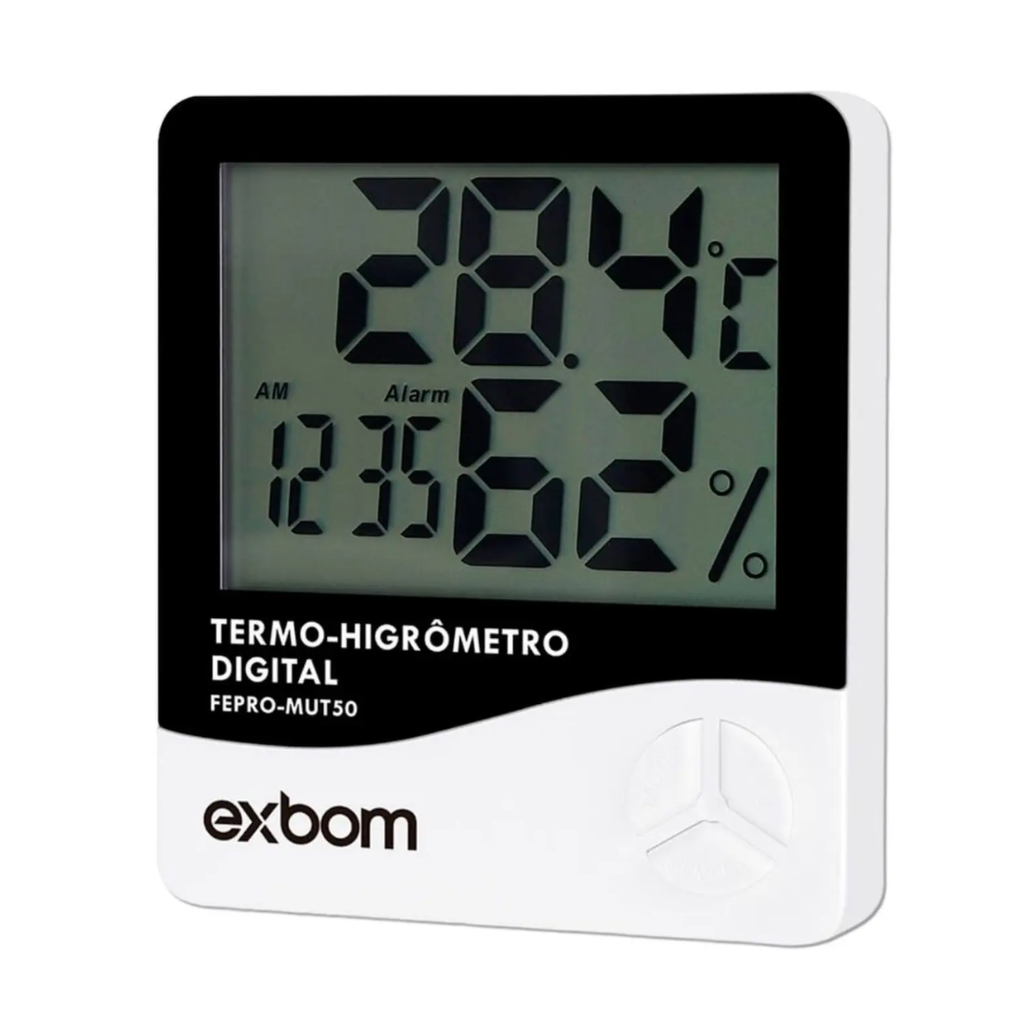 Termo-higrômetro digital prático e versátil, combinando medição de temperatura e umidade em um único equipamento. Indicado para monitoramento ambiental em laboratórios, estufas, escritórios ou residências.
