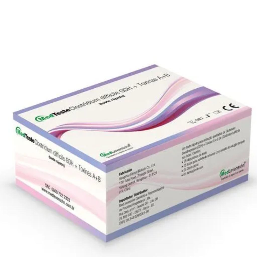 Teste imunocromatográfico de fluxo lateral para detecção qualitativa de Clostridium difficile em amostras clínicas. Indicado para uso em diagnóstico laboratorial de infecções gastrointestinais associadas a esta bactéria.